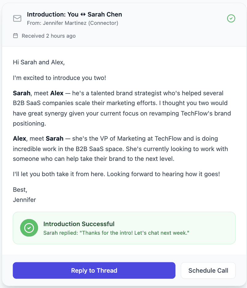 Receive a warm, double opt-in introduction from Fluum.